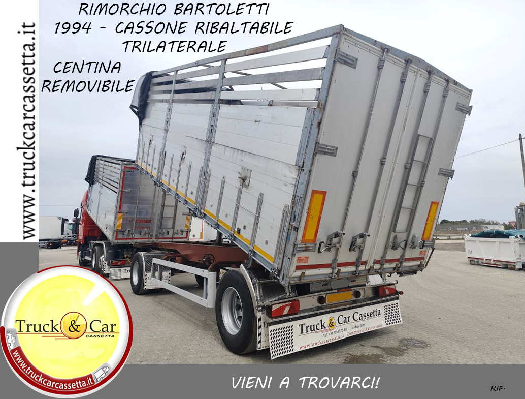 RIF.1206 RIMORCHIO BARTOLETTI – 1994 – CASSONE RIBALTABILE TRILATERALE IN ACCIAIO INOX CON CENTINA REMOVIBILE SPONDE/SOVRASPONDE
